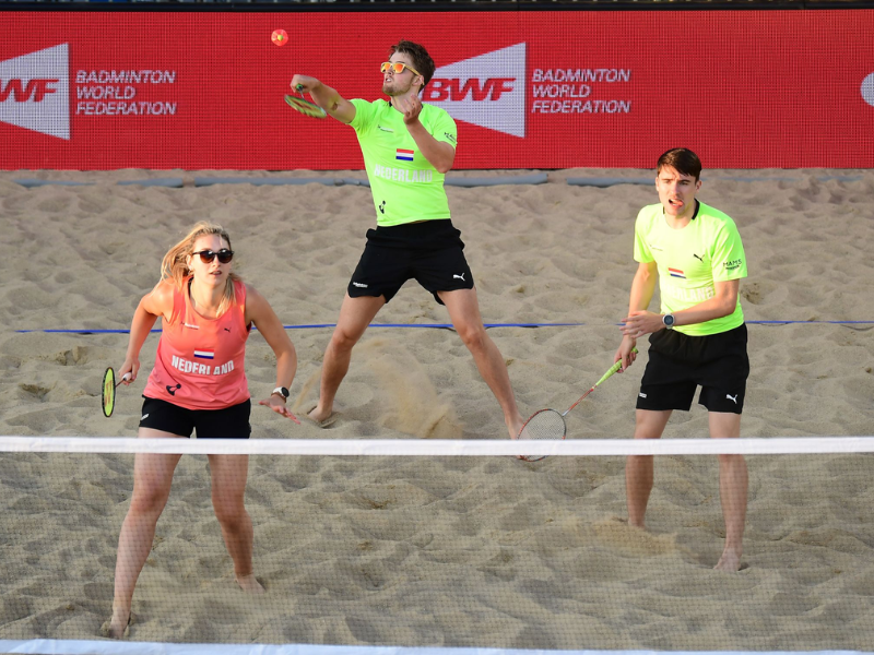 Sejak diperkenalkan, Air Badminton langsung mendapat perhatian dunia. Pada tahun 2023, olahraga ini masuk dalam ANOC World Beach Games di Bali, menandai kiprahnya di panggung olahraga internasional. Nomor yang dipertandingkan meliputi Tripel Putra, Tripel Putri, Ganda Campuran, hingga Estafet Beregu Campuran.