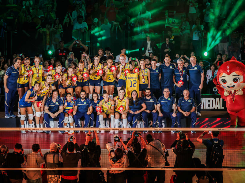 Tim voli putri Brasil berhasil meraih medali perunggu di Kejuaraan Dunia Voli Putri FIVB 2025 yang berlangsung di Bangkok, Thailand. Dalam pertandingan perebutan tempat ketiga, Brasil mengalahkan Jepang melalui laga lima set yang dramatis. Kemenangan ini menegaskan status Brasil sebagai salah satu kekuatan utama dalam dunia voli putri internasional.