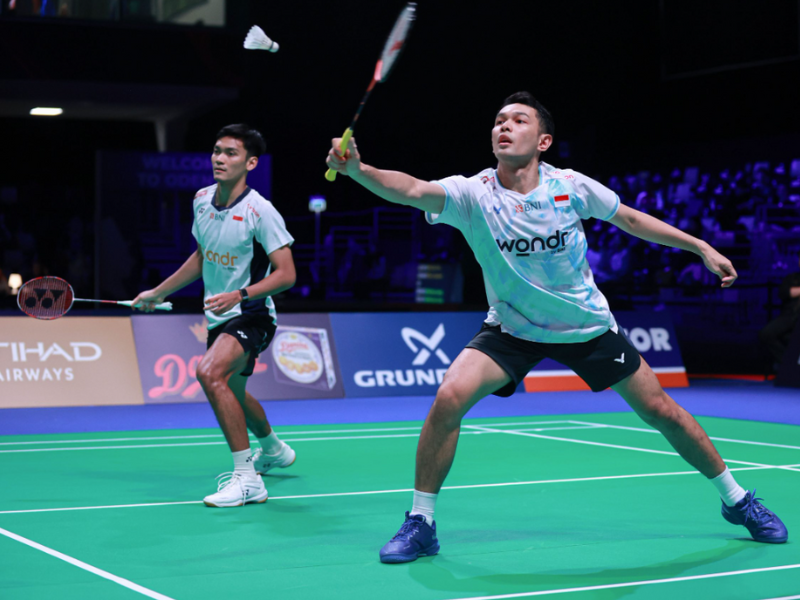 Fajar Alfian/Muhammad Shohibul Fikri menjadi wakil pertama yang memastikan tiket ke delapan besar. Mereka mengalahkan pasangan Denmark, Daniel Lundgaard/Mads Vestergaard, dengan skor 21–14, 21–16 (Media Indonesia, 2025). Sejak awal gim pertama, Fajar/Fikri tampil agresif dengan pola serangan cepat yang membuat lawan kesulitan berkembang. Pada gim kedua, mereka tetap menjaga ritme dan sukses menutup pertandingan dalam tempo 35 menit.