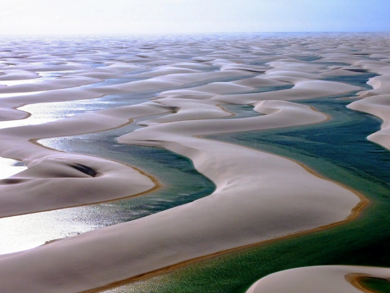 Yang membuat Lençóis Maranhenses menonjol adalah perpaduan ekstrem antara pasir dan air. Hujan lebat yang turun antara Januari hingga Juni membentuk ribuan laguna di antara bukit pasir. Pada musim kemarau, airnya menguap perlahan, menciptakan pemandangan kontras antara pasir putih dan langit biru yang luar biasa (Gov.br, 2024).
