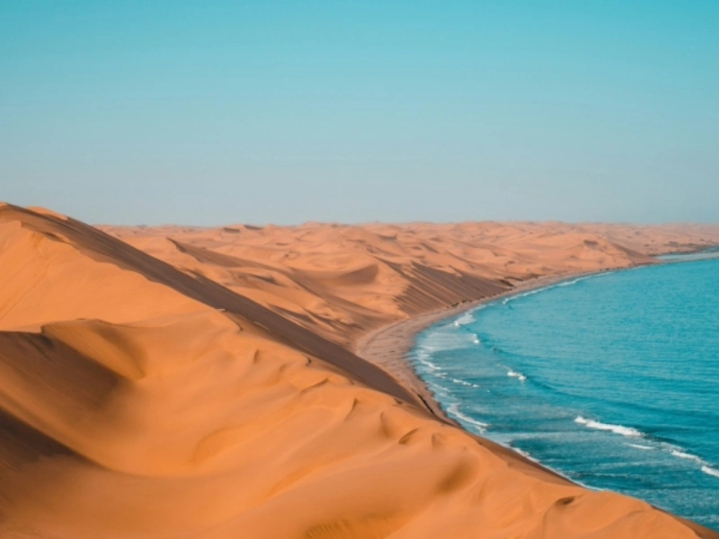 Fenomena alam di Sandwich Harbour begitu unik: bukit pasir yang menjulang hingga lebih dari 100 meter tampak langsung menyentuh air laut. Kontras warna kuning keemasan pasir dan biru laut menciptakan panorama yang nyaris tidak ditemukan di tempat lain. Menurut laporan Namibian Sun (2024), banyak wisatawan menganggap pengalaman mengemudi 4×4 di kawasan ini sebagai momen paling berkesan dalam hidup mereka.