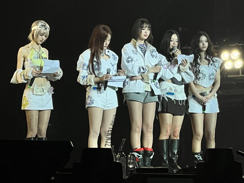 Haerin berkata dengan suara bergetar, “Kami ingin terus bernyanyi dan menari untuk kalian. Terima kasih telah menjadi bagian dari perjalanan kami. Mohon tunggu kami.”
