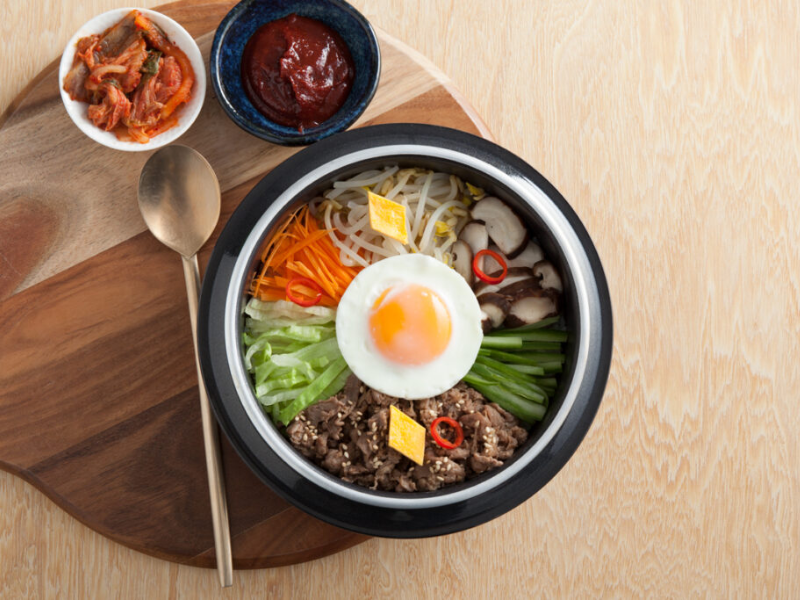 Bibimbap adalah salah satu hidangan paling terkenal dari Korea Selatan. Nama ini berarti “nasi campur,” berasal dari kata bibim (campur) dan bap (nasi). Dalam versi tradisional, bibimbap terdiri dari nasi hangat yang diberi aneka sayuran, protein seperti daging sapi, telur, dan saus cabai fermentasi khas Korea bernama gochujang (Wikipedia, 2025).