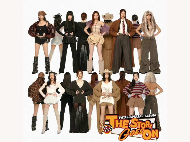 TWICE merayakan ulang tahun ke-10 mereka dengan merilis album spesial TEN: The Story Goes On pada 10 Oktober 2025. Album ini menampilkan title track ME+YOU, yang mencerminkan perjalanan grup dan rasa terima kasih kepada penggemar setia mereka, ONCE. (The Korea Times)