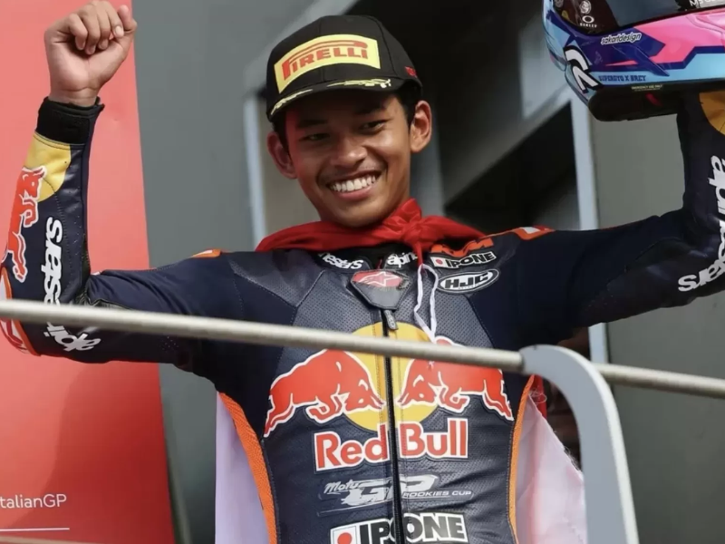 Pembalap muda Indonesia, Veda Ega Pratama, mencuri perhatian dunia balap saat tampil luar biasa di Red Bull MotoGP Rookies Cup seri Mugello, Italia. Pada akhir pekan 21–22 Juni 2025, Veda sukses meraih double victory—menang di dua balapan—serta membuat lagu kebangsaan Indonesia Raya berkumandang di sirkuit Mugello. Ini menjadi momen bersejarah sebagai pembalap Indonesia pertama yang meraih kemenangan di ajang ini.